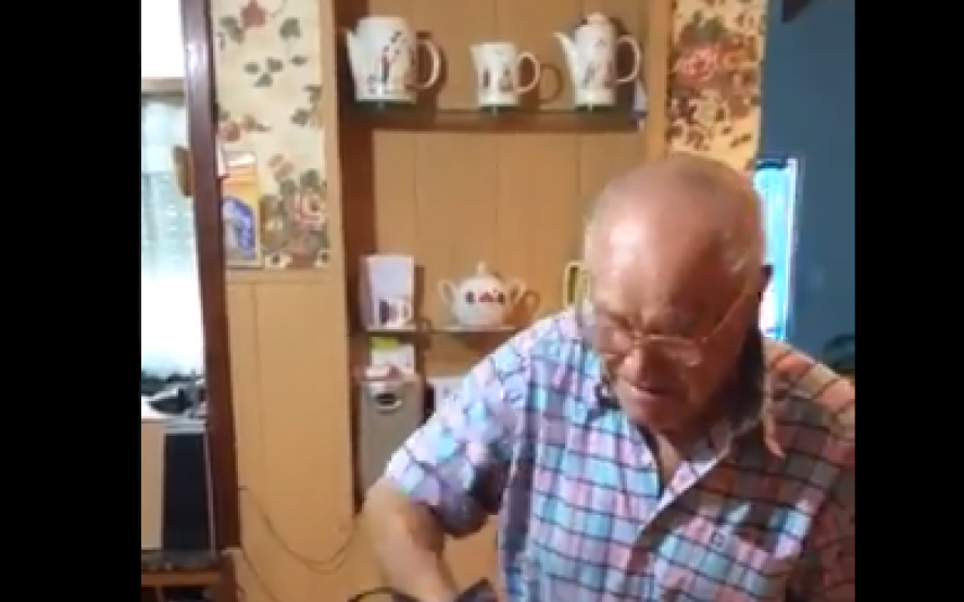 “Después de años sin tener una mascota le regalamos un perro con mi hermano y así reaccionar, escribió Seba en su cuenta de twitter mostrando el video en donde se veía el momento en que sus abuelos abrieron la mochila en donde llevaron el “regalito”