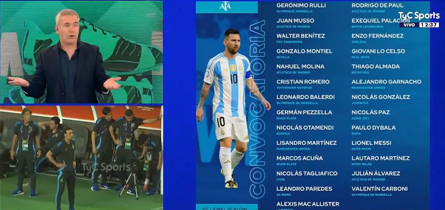 “Nosotros estamos a favor del proceso del entrenador, festejamos, celebramos, y obvio que está perfecto todo lo que haga Scaloni después de lo que hizo en el Mundial, las 2 Copas América, nadie discute nada…Pero la lista es recontra discutible (sic) en algunos puntos, o sea hay muchos jugadores, pero muchos jugadores, que no están en buen nivel, que juegan en clubes desconocidos, que no se sabe a dónde juegan y sin embargo juegan en la selección”, apuntó.