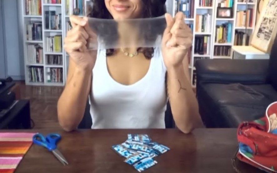 Solo necesitas el material de látex (preservativo o film), recortarlo en forma cuadrada o rectangular y colocarlo sobre los genitales. Sobre la vulva o ano para el caso de sexo oral, o sobre genitales en casa de frotación entre mujeres. Es importante tener en cuenta usarlo de un mismo lado.