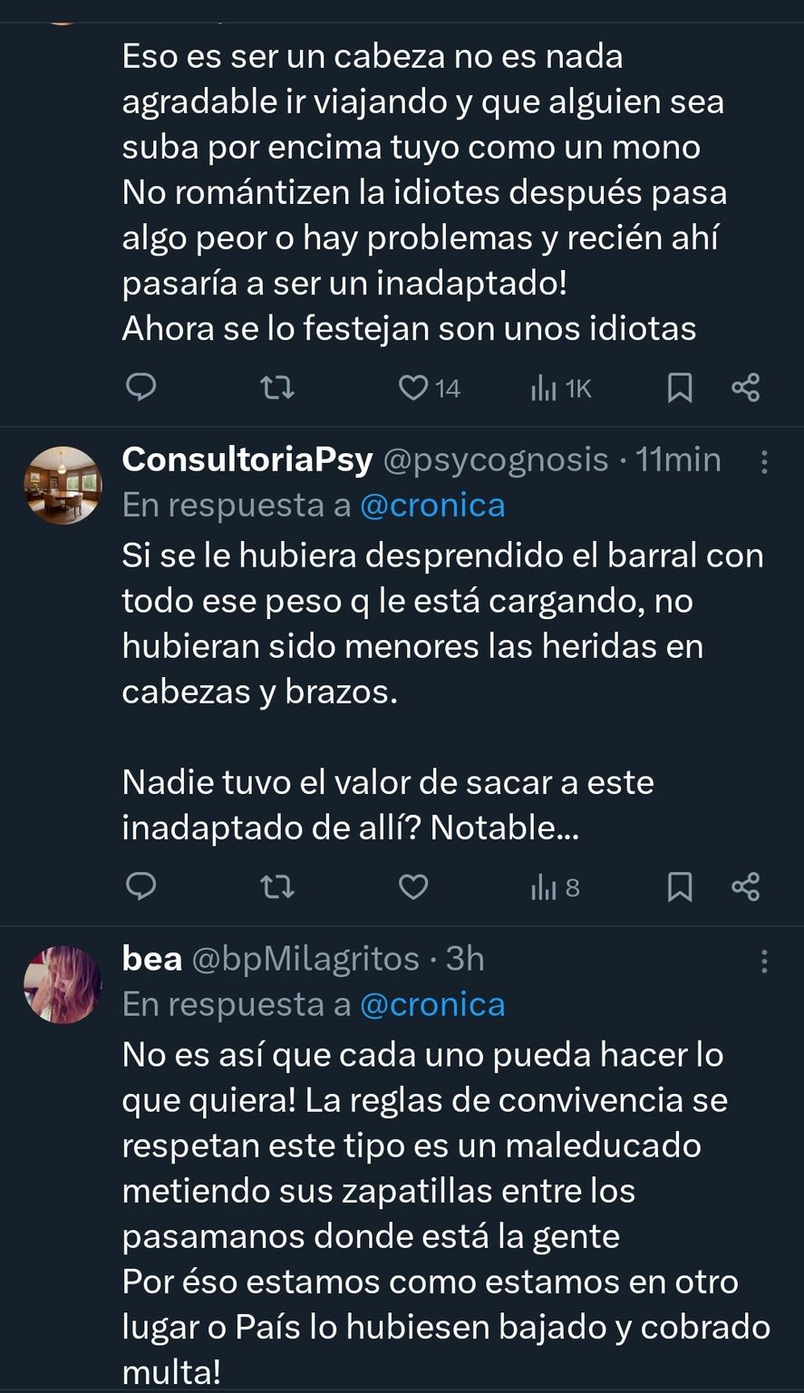 “Por lo menos estaba cómodo, más que nosotros los que vamos parados”, bromeó un usuario. Otro añadió: “Ya nada me sorprende en el Roca, es otro universo”.