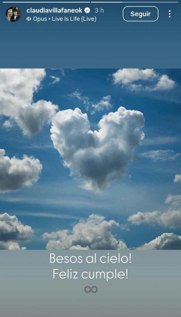 La empresara y ex pareja del 10, Claudia Villafañe compartió en sus redes una foto de una nube con forma de corazón y escribió: “Besos al cielo! Feliz cumple!”.