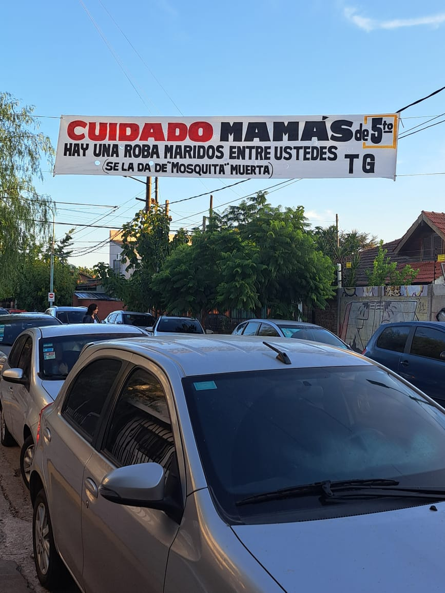 Según la autora del cartel la mami pertenece al curso 5to del Establecimiento Educativo de Adrogué, que es a donde colgaron los pasacalles.
