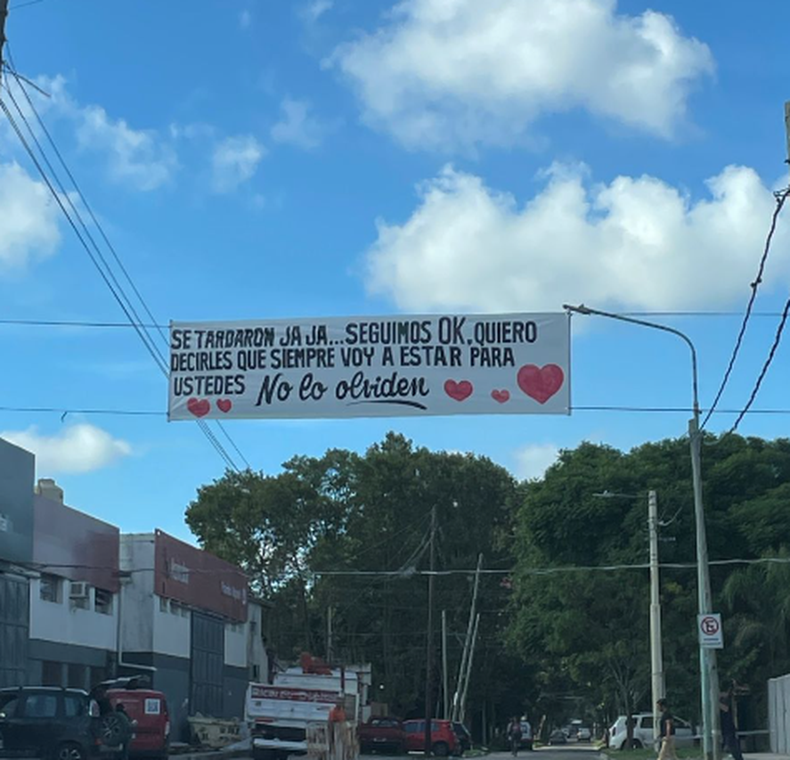 Los usuarios aportaron más información al respecto y, según vecinos, hay todavía más carteles en las calles cercanas con diferentes frases: “Buen día, Mamu!!! Como lo prometí… Voy a acompañarte en tus mañanas”, señala otro pasacalle.