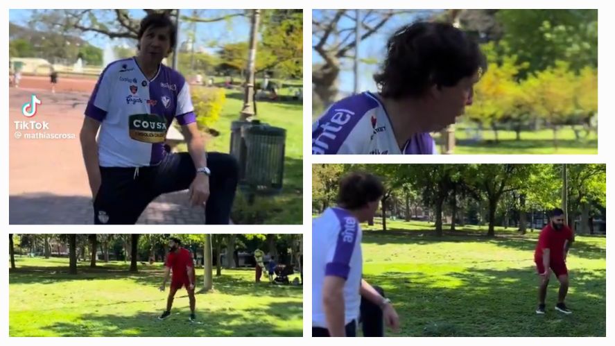 Con la camiseta del club del ascenso Fénix y una pierna apoyada en un banco de plaza, empezó a narrar con la pasión que lo caracteriza: “Vamos a ver cómo juega Mathías… Observen… practica bien, arranca…”, mientras la cámara lo filmaba.