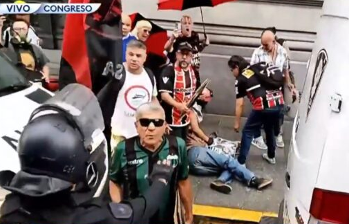 El momento fue capturado por las cámaras de TN, cuyos conductores señalaron “Es innecesario la violencia”, y “Tiraron alguien al piso”.