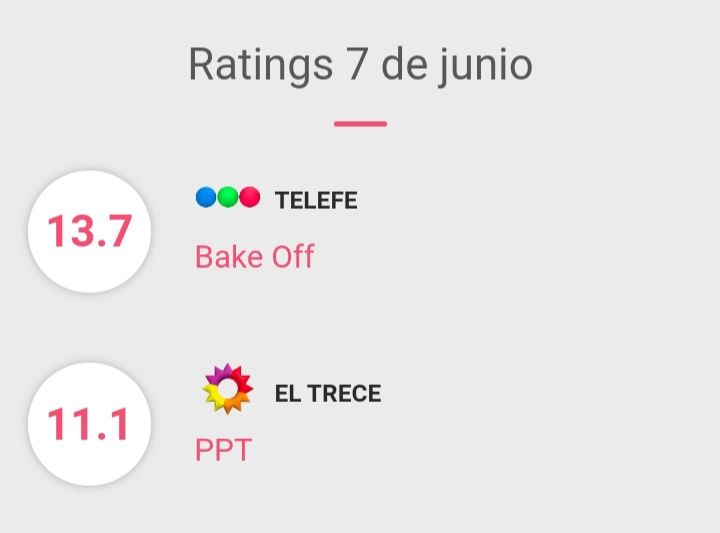 Mientras el pico en la pantalla de eltrece trepaba a once, Telefe luchaba por no bajar su performance que se ubicada solo dos puntos por arriba, con valores máximos que le permitieron alcanzar la medida de catorce. Finalmente Bake Off se llevó el primer puesto del Domingo con 13.7 y PPT terminó segundo con 11.1 puntos de rating.