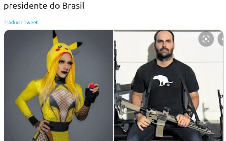 Hoy en su twitter Estanislao le dedicó un mensaje refiriendose al meme que circuló en las redes en donde se intentaban mofar de su aspecto como drag queen. En la foto se veía al hijo de Bolsonaro portando un arma de gran calibre y al hijo de Alberto vestido como Pikachu de la serie Pokémon.