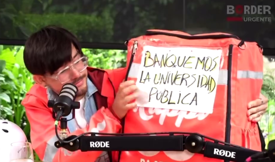 Con su campera naranja de Rappi y su mochila con un cartel pegado que señala “Banquemos la universidad pública”, Julián fue citado a una entrevista junto a la periodista María Julia Oliván en Border. Y ni ella ni él sabían cómo iba a terminar este intercambio.