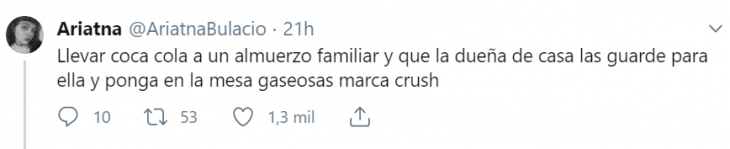 “Hicimos una fiesta en la casa de una amiga y nos quiso cobrar la luz que gastamos”, sumaron en otro tuit que resultó ser de los preferidos entre los seguidores del hilo. “Una amiga y toda su familia volvían a guardar en el frasco el cachito mayonesa que les quedaba en el plato después de comer. Con pedazos de comida y todo”, relató otra usuaria.
