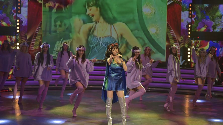 Fátima cantó y bailó al ritmo de los clásicos de Gilda y de las pistas originales que le proporcionó Toti Giménez, el esposo de la cantante. Con el look con el que Gilda se volvió mito y figura popular, la humorista llegó a la pista con la canción “No es mi despedida”. Acompañada por un cuerpo de bailarinas y con el club de fans de la cantante presenciando, Fátima continuó con “No me arrepiento de este amor”, otro de los clásicos.