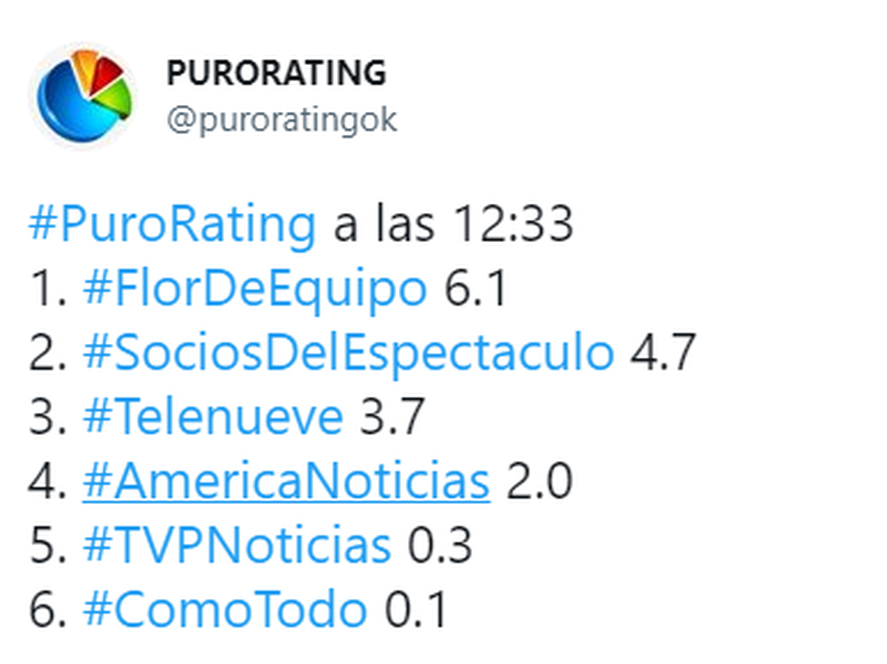 Este lunes en Telefe se esperaba con ansias el número de rating debido a que venían perdiendo con El Trece y con el cambio de conductora, Telefe logró llevarse la franja horaria contra “Socios del Espectáculo”, el programa que conducen Adrián Pallares y rodrigo Lussich. “Flor de Equipo” logró picos de 6,1 de rating en su segunda hora y le ganó ampliamente la puja al programa de El Trece que midió entre 4 y 5 puntos.