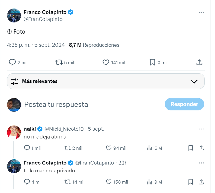 Las redes se revolucionaron en la noche de este jueves 5 de septiembre cuando el piloto Franco Colapinto y la cantante Nicki Nicole fueron protagonistas de un insólito intercambio. ¿Qué se dijeron?
