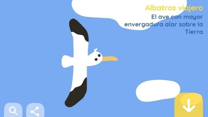 El ejemplar que da inicio a la animación es un albatros errante. Se trata de un ave que puede alcanzar los 1,3 metros de altura y una envergadura alar de entre 2,5 y 3,5 metros, siendo la mayor de todas las aves voladoras que existen en la actualidad.