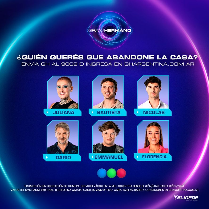Minutos más tarde, Santiago del Moro le solicitó a la líder que diga el nombre del jugador que enviaría a la gala del domingo y, luego de ir descartado participantes, el elegido fue Martín. De esta manera los nominados de esta semana son: Juliana, Nicolás, Bautista, Emmanuel, Darío y Florencia.