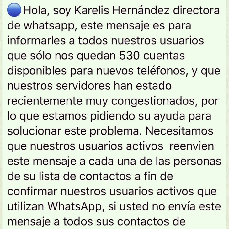 a. ¿Es una cadena de WhatsApp sin autoría o sin enlace? Desconfía y, preferentemente, no la compartas;