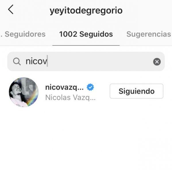 Sin ir más léjos, en el Cantando 2020, el conductor intentó que Rochi Igarzabal diga quién era el administrador del grupo de WhatsApp en el que está la mayoría del elenco y no lo logró. En Instagram, Nico Vázquez no lo sigue a Yeyo pero Yeyo sí lo sigue a Nico Vázquez, ¿cuál será el motivo del distanciamiento?