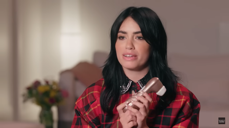 “Hola amigos de Vogue y les voy a contar lo que llevo dentro de mi bolso”, comenzó relatando Lali en un video íntimo para la revista Vogue España.