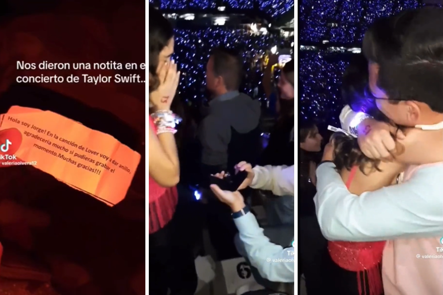 Las swifties no lo dudaron y, al momento de comenzar el tema, ya comenzaron a grabar a la pareja. Al momento del estribillo, él le dio una de las clásicas friendship bracelets y luego se arrodilló para mostrarle el anillo. Muy emocionada, la joven le dijo que sí y lo abrazó muy fuerte, acompañados de los gritos de felicidad de quienes se encontraban alrededor.