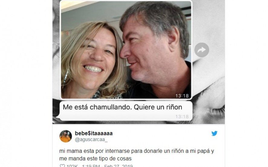 mi mama esta por internarse para donarle un riñón a mi papá y me manda este tipo de cosas pic.twitter.com/Tq2S6xhmZU