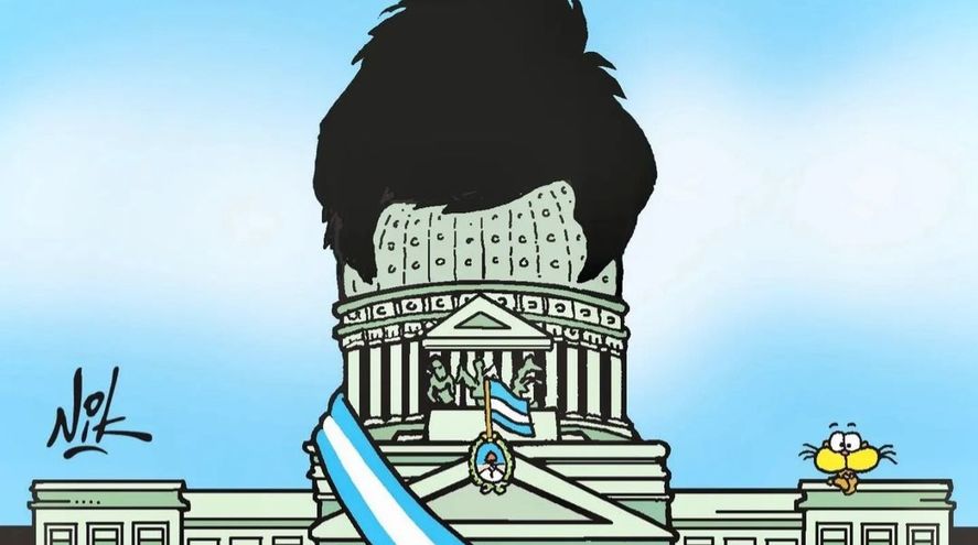Nik, el inefable creador de “Gaturro“, le hizo un regalo muy especial a Javier Milei por su asunción como presidente de la Nación: un dibujo que muestra el Congreso con la banda presidencial y la melena del flamante mandatario: Un detalle de buen gusto que demuestra el talento y la originalidad de Cristian Gustavo Dzwonik, verdadero nombre del inventor (?) del personaje querido por los niños y los adultos que no leen a otros caricaturistas.