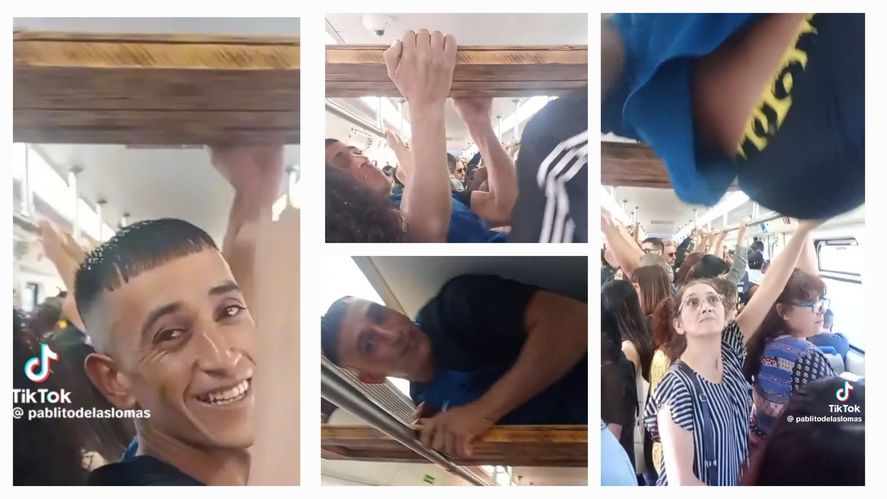 En los videos, el joven demuestra una habilidad digna de un equilibrista: sube a la madera con destreza, ajusta su posición, y se dispone a viajar “colgado” del pasamanos del vagón.