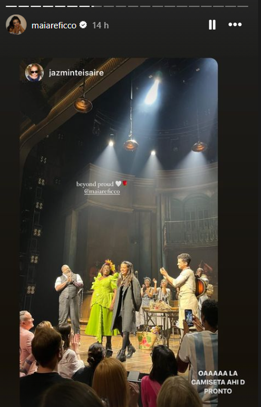 “Nunca he estado más feliz (palabras felices entran más tarde en la semana- ahora mismo no puedo procesar nada de esto, pero guau, me encanta lo que hago, amo a mi gente, amo este programa y a cada persona en él. Me siento tan afortunada. Es un honor compartir esto con una compañía tan increíble. gracias gracias gracias)”, escribió la actriz en su cuenta de Instagram y compartió algunas imágenes en donde, desde el público, se puede ver a alguien con la camiseta de la Selección Argentina.