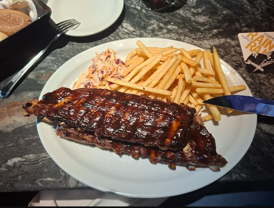 El mozo llega con una bandeja que podría ser un solo de Slash en versión gastronómica: BBQ Ribs y un pequeño infierno de salsas. Todo servido sobre madera, todo brillando bajo una luz tenue que parece puesta para Instagram, pero que de algún modo sigue siendo rock. Y era sólo el comienzo
