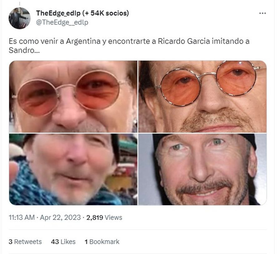 El fanático de la banda y del guitarrista @TheEdge__edlp no creyó para nada en el encuentro e instaló la idea de los imitadores: