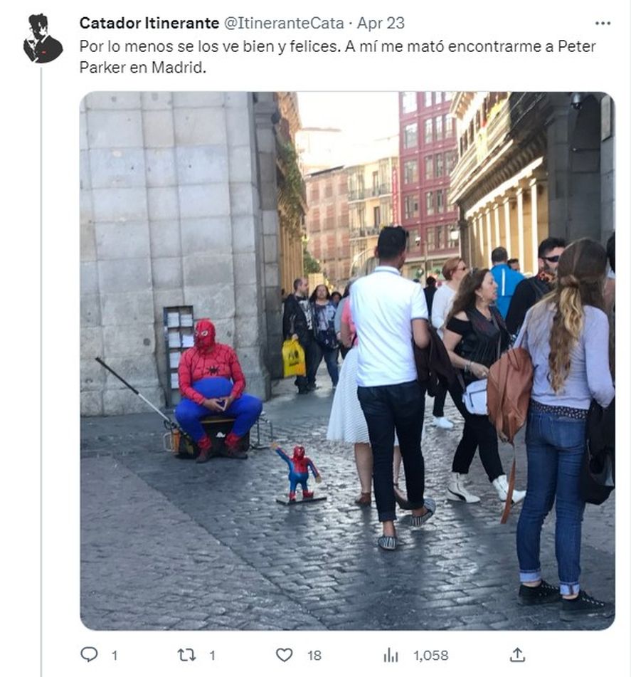 @ItineranteCata se divirtió un poco más y compartió la imagen de un “hombre araña” sentado en las calles de Madrid: