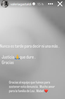 Valeria Gastaldi y Virginia Da Cunha también manifestaron su apoyo a su compañera con mensajes en las redes: “Nunca es tarde para decir ni una más”, escribió una de las Bandana.