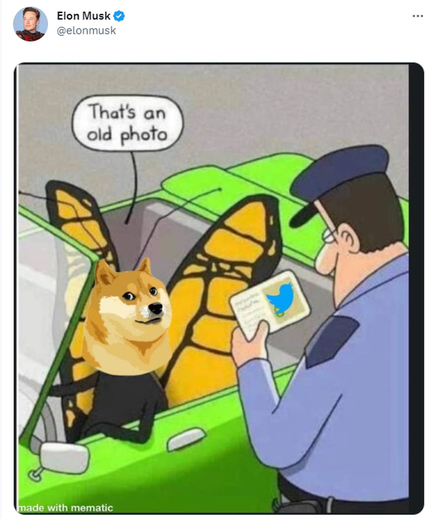 El mismo Elon Musk compartió una imagen en la que el meme de doge comparte su identificación en la que aparece el icono del pajarito y éste señala: “Es una foto vieja”, pero no explicó aún a qué se debe este cambio.