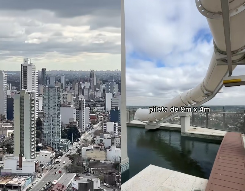 “El único depto con tobogán y pileta de buenos aires, en venta”, compartió el joven influencer que se dedica a compartir videos desde las alturas y que cuenta con más de 100 mil seguidores.