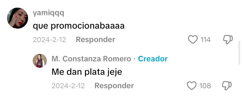 No se trata de la primer influencer que promociona esta actividad. Meses atrás, Constanza Romero -también de Gran Hermano- promocionó este sitio. Cuando la cuestionaron, ella respondió: “Me dan plata jeje”.