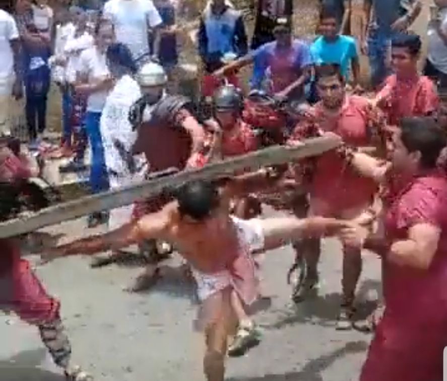 “Bizarrisimo el via crucis de รฉsta comunidad… les encanta dejar caer a Jebรบs !. y ยฟpor quรฉ hay tantos personajes mezclados?!”, dice quien sube el video de Jesรบs volador.