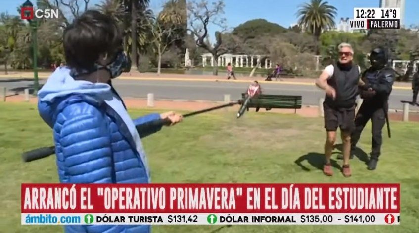 No es la primera vez que el móvil de C5N es agredido. En esta oportunidad, Robertito Funes Ugarte estaba haciendo un reporte en los bosques de Palermo con motivo de los festejos por el Día de al Primavera, cuando fue agredido con insultos por un hombre.