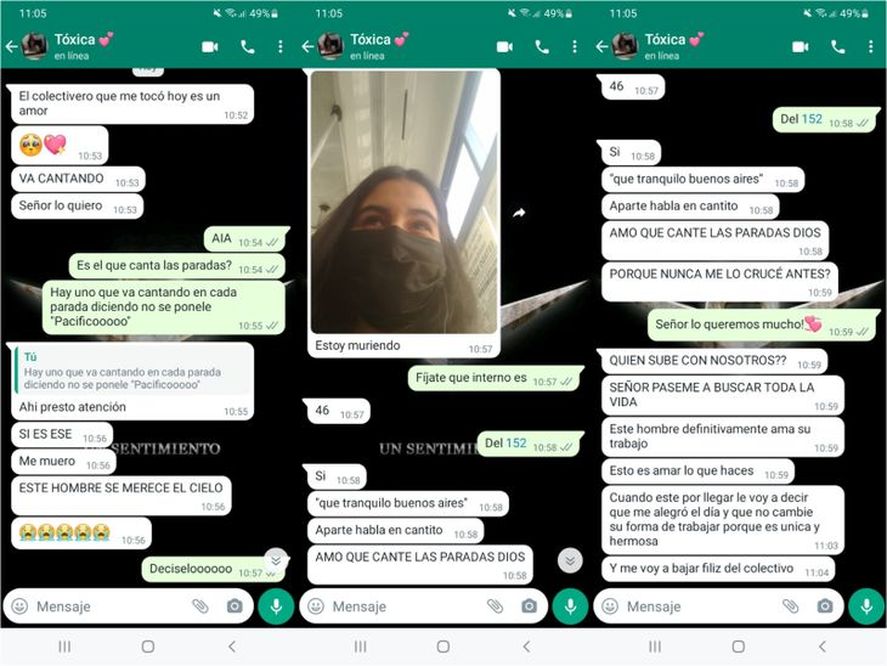 “¿Es el que canta las paradas? Por ejemplo, ‘Pacíficooo’”, quiso saber su madre para corroborar que se trataba del mismo empleado. A los pocos minutos, Ami lo escuchó cantar y comprobó que era él. “Amo que cante en las paradas, dios ¿Por qué nunca me lo crucé antes?”, escribió obnubilada la joven en el chat y contó que al llegar a las paradas preguntaba “¿Quién sube con nosotros?”.